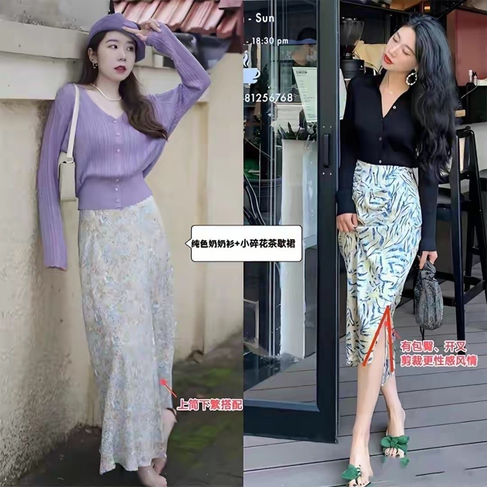 当然啦,裙子的版型也很关键,比如说你选择裙子横向拉宽,穿在身上自然显得臃肿又显胖,我们选择的裙子版型要合身,穿在身上才会优雅显瘦。再搭配上一款薄款的小外套,更有层次感。