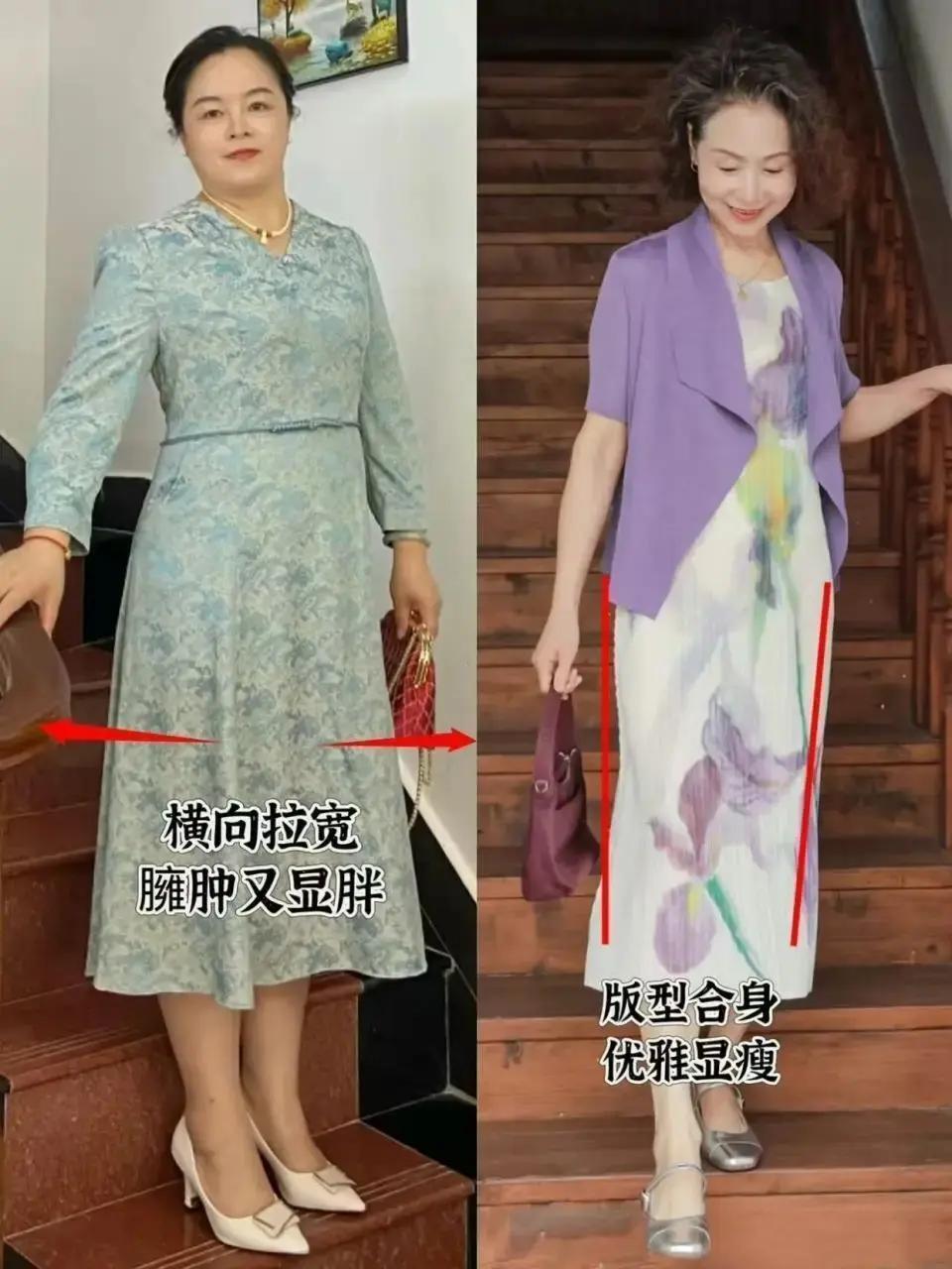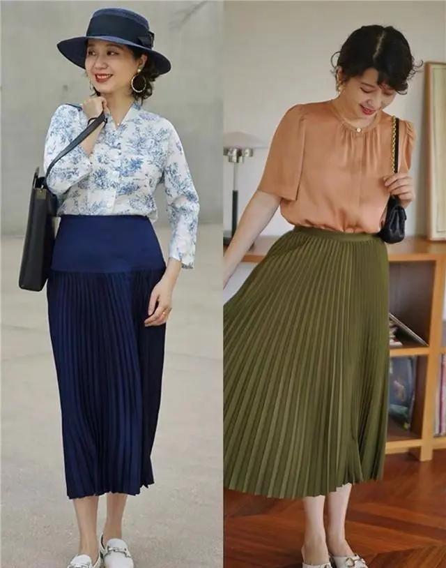 不管如何搭配,最主要的就是选择好的衣服面料,懂得做减法,搭配颜色不能太凌乱,整套穿搭配色不超过三个色调,同时要提升腰线,遮住腰间的赘肉,胯宽腿粗,这些小缺点,裙子不能穿的太短,盖过膝盖到小腿肚的位置最佳。